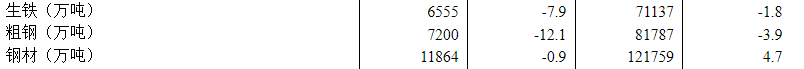 国家统计局:10月份钢材产量为11864万吨,同比下降0.9%