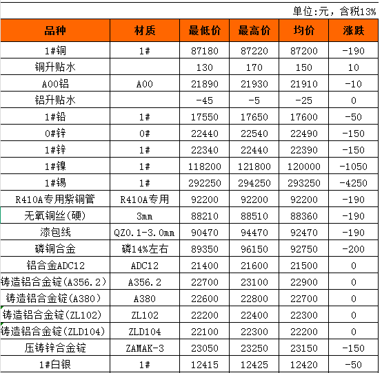 长江有色金属现货11月14日行情