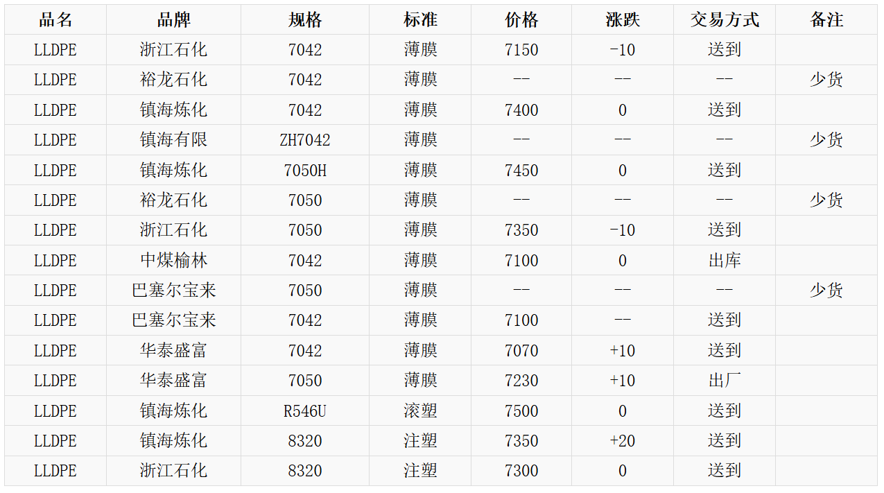 11月11日余姚市场LLDPE国产料价格小幅调整