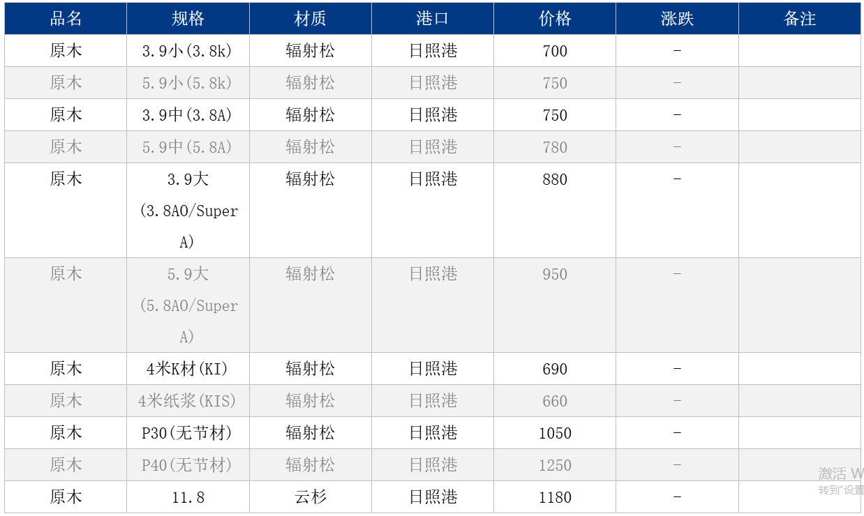 11月12日日照港原木现货价格持稳