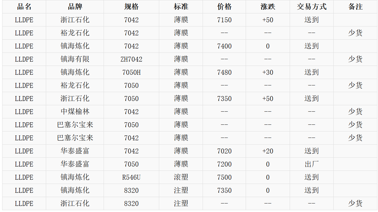 11月14日余姚市场LLDPE国产料价格调整