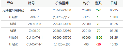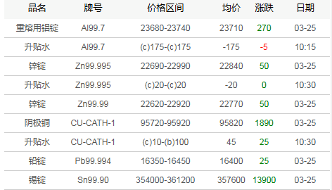 广东地区有色现货市场3月25日行情
