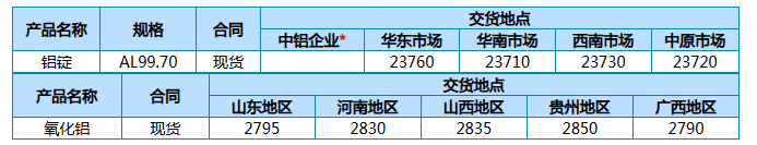 中铝股份公司主要产品3月25日现货报价