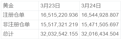 COMEX 3月24日黄金库存统计