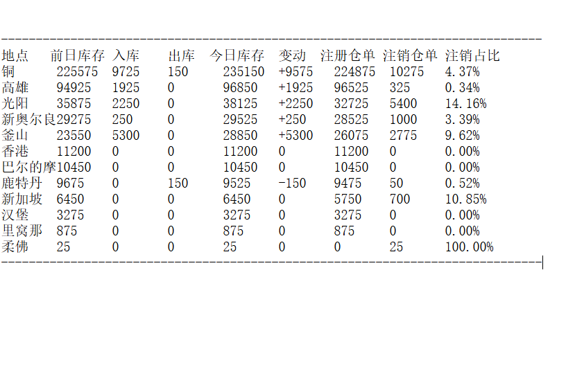 LME 2月20日铜库存分布情况