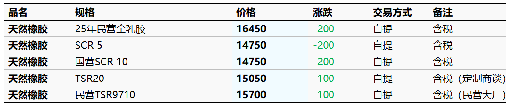 4月17日云南市场天然橡胶价格下调